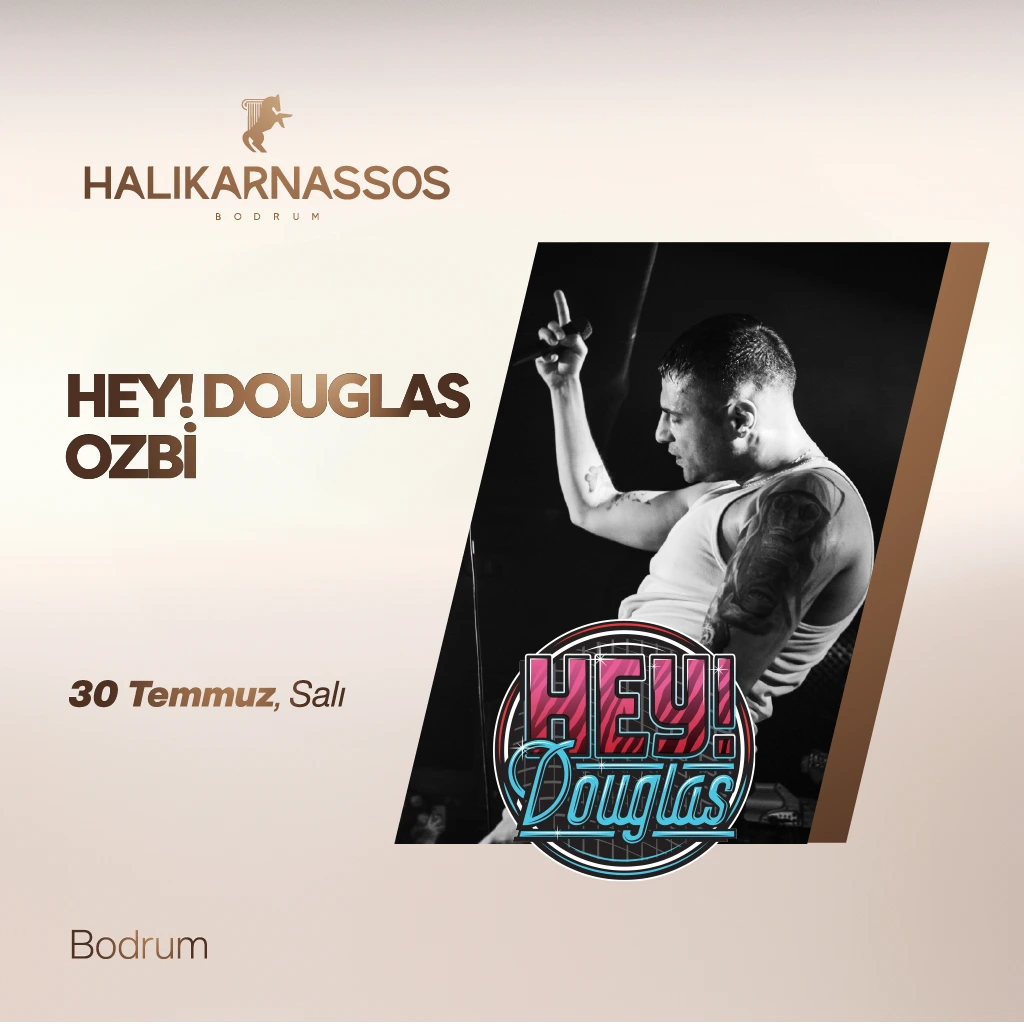 HEY DOUGLAS & OZBİ 30 TEMMUZ GECESİ BODRUM HALİKARNASSOS’TA! Müziğin ve eğlencenin doruklarına ulaşacağınız bu özel gecede yerinizi ayırtmayı unutmayın!