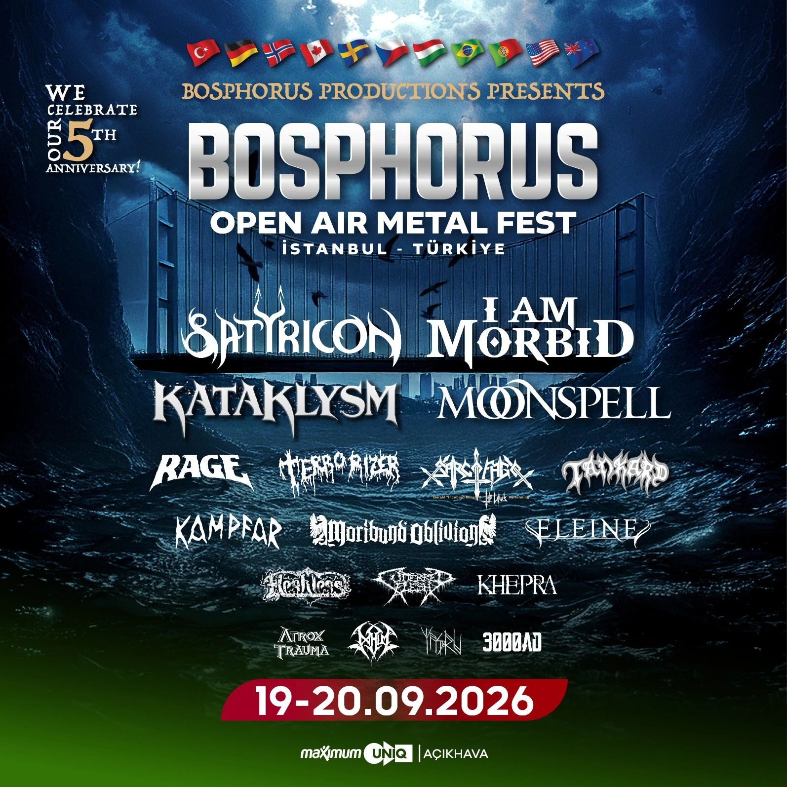 2026 yılında 5. si düzenlenecek olan Bosphorus Open Air Metal Fest 19-20 Eylül tarihlerinde metalseverlerle buluşacak. Bosphorus Open Air Metal Fest Dünya metal sahnesinin birbirinden önemli gruplarını ağırlıyor. Maximum UNIQ