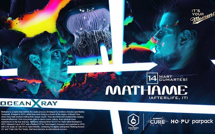 Elektronik müziğin global plak şirketi Afterlife’ın en başarılı isimlerinden Mathame, Hexagon ve Hopu'nun birlikte ilk ortak sunumu olarak 14 Mart Cumartesi günü İzmir’in underground platformu Hangout Cure’da.