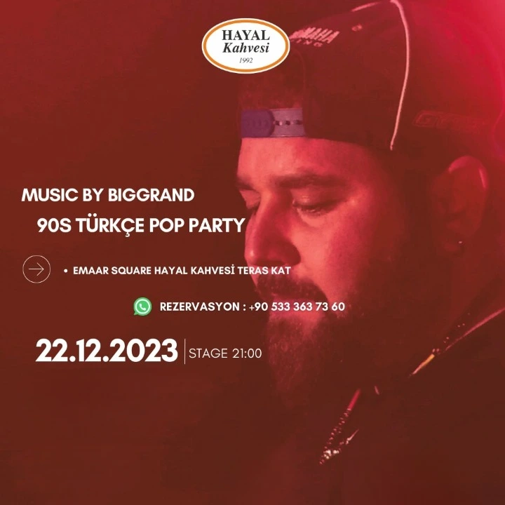 Music By Biggrand-90’s Türkçe Pop Party 22 Aralık’ta Hayal Kahvesi Emaar sahnesinde.